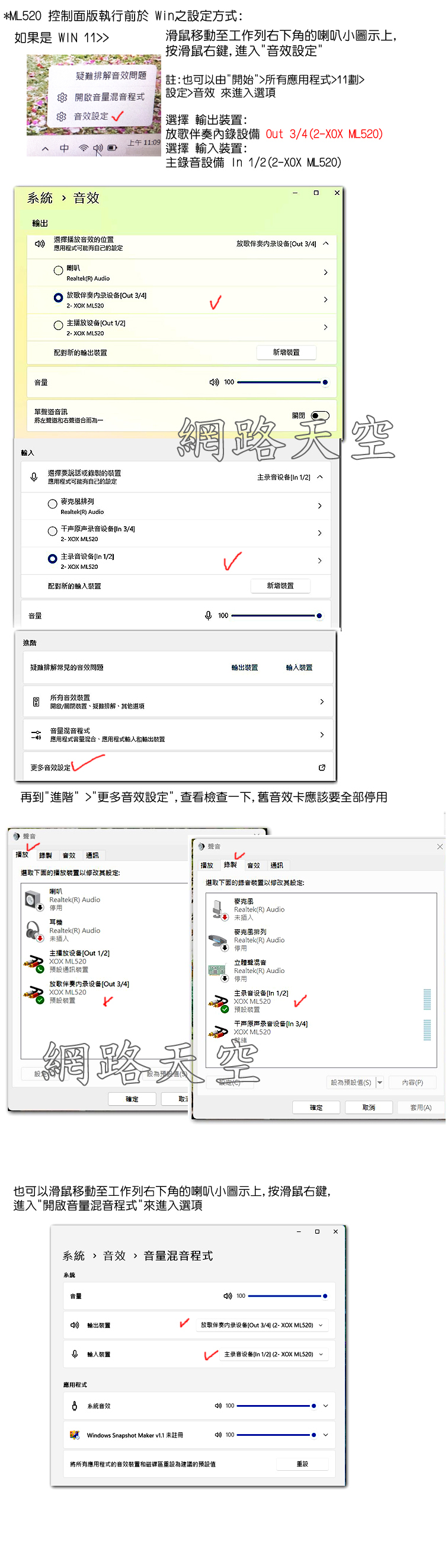 執行ML520 控制面版前請於 Win 修改設定輸入輸出裝置: